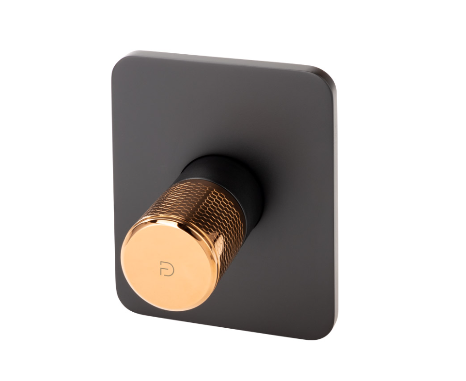 Bateria de duș încastrată ARDESIA reprezintă alegerea perfectă pentru cei care caută soluții de amenajare rafinate și moderne în baie. Cu un design inovator ce îmbină elemente dreptunghiulare cu linii fluide, această baterie neagră cu accente rose gold adaugă un plus de eleganță și stil oricărui decor de baie. Fiind integrată în perete, bateria oferă un aspect minimalist și curat, perfect pentru un spațiu de baie contemporan. Poziționarea îngropată a bateriei nu doar economisește spațiu, ci și conferă un aer sofisticat și ordonat întregii băi. Combinațiile de culori și finisajele rafinate fac din această baterie un element central al unei băi luxoase și moderne.