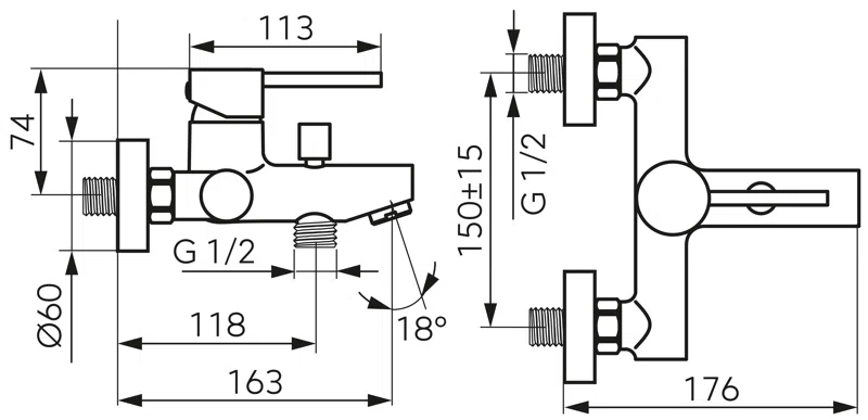 Distanța între racorduri [mm]: 150 ± 20