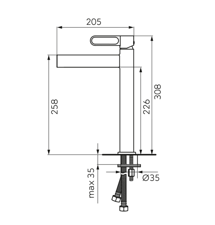 Încadrată în colecția ZAFFIRO, bateria pentru lavoar înalt reprezintă o expresie a rafinamentului și eleganței în amenajările interioare de baie. Cu un design distinctiv și un finisaj în negru mat, această baterie de lavoar adaugă o notă de lux și exclusivitate oricărui spațiu de baie modern. Corpul său subțire, cilindric, și pipa înaltă, dreptunghiulară, alături de finisajul negru, îl fac un element definitoriu pentru un stil modern, cum ar fi cel industrial. Echipată cu un regulator ceramic, această baterie pentru lavoarele montate pe blat garantează o funcționare fără probleme, în timp ce aeratorul integrat ajută la economisirea apei. În plus, bateria vine completată cu un ventil metalic de scurgere click-clack, oferind un nivel superior de confort și funcționalitate în utilizarea zilnică.