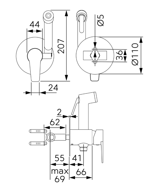 Baterie încastrată bideu, cu accesorii Ritto, crom BTR66P
