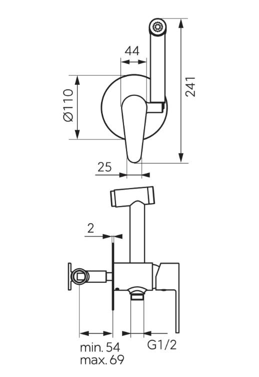 Baterie încastrată cu set duș igienic Algeo, crom BAG66P
