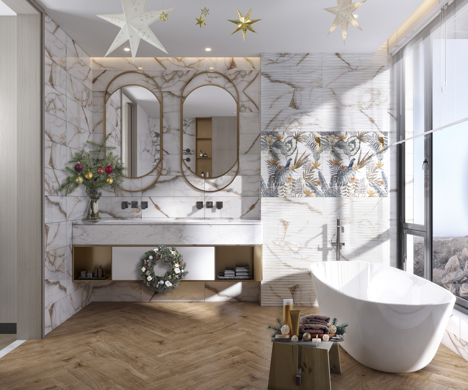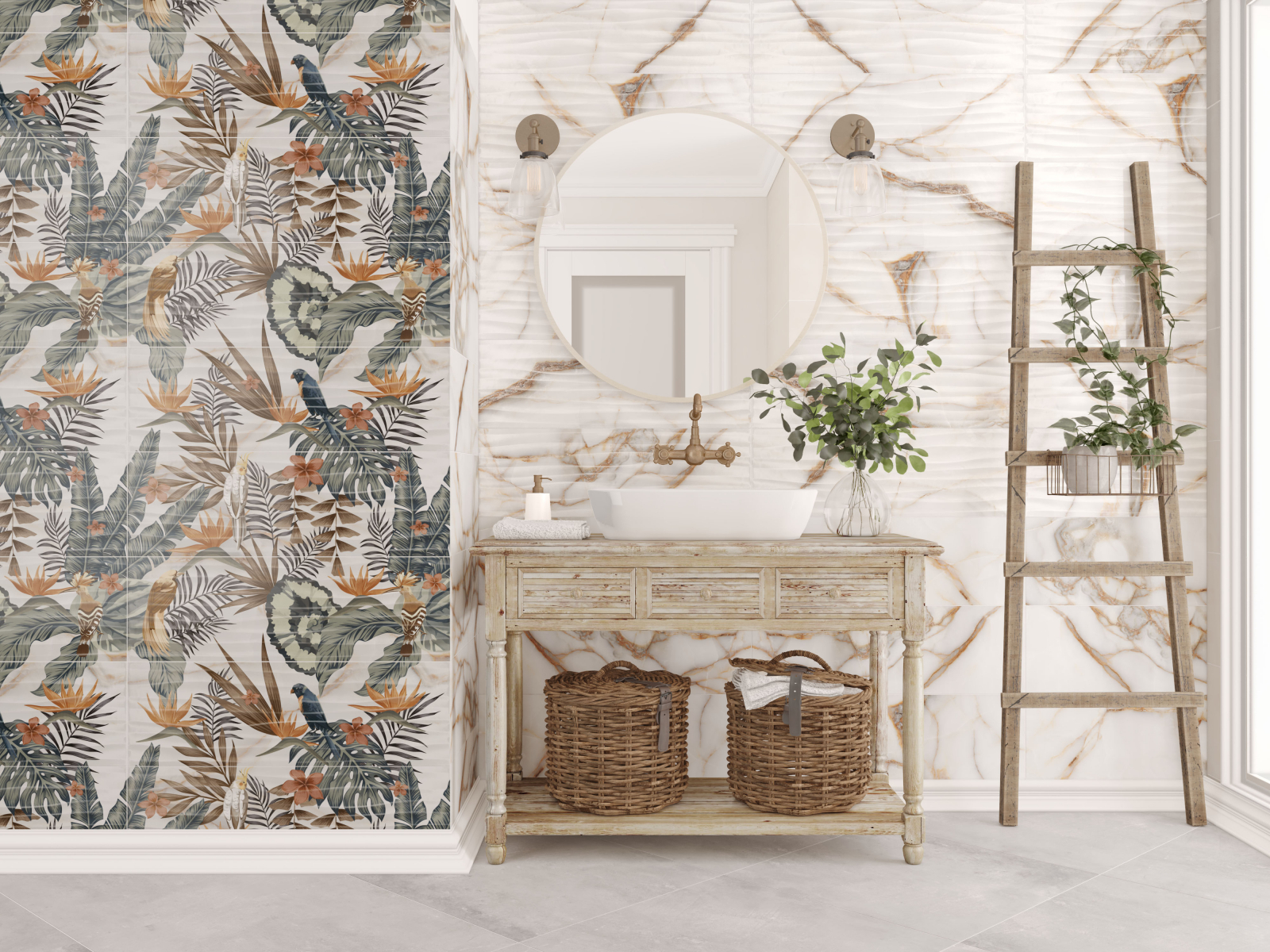 Faianta rectificata tip marmura, Goldie White 4991, 24.4x74.4 cm, alb, finisaj mat