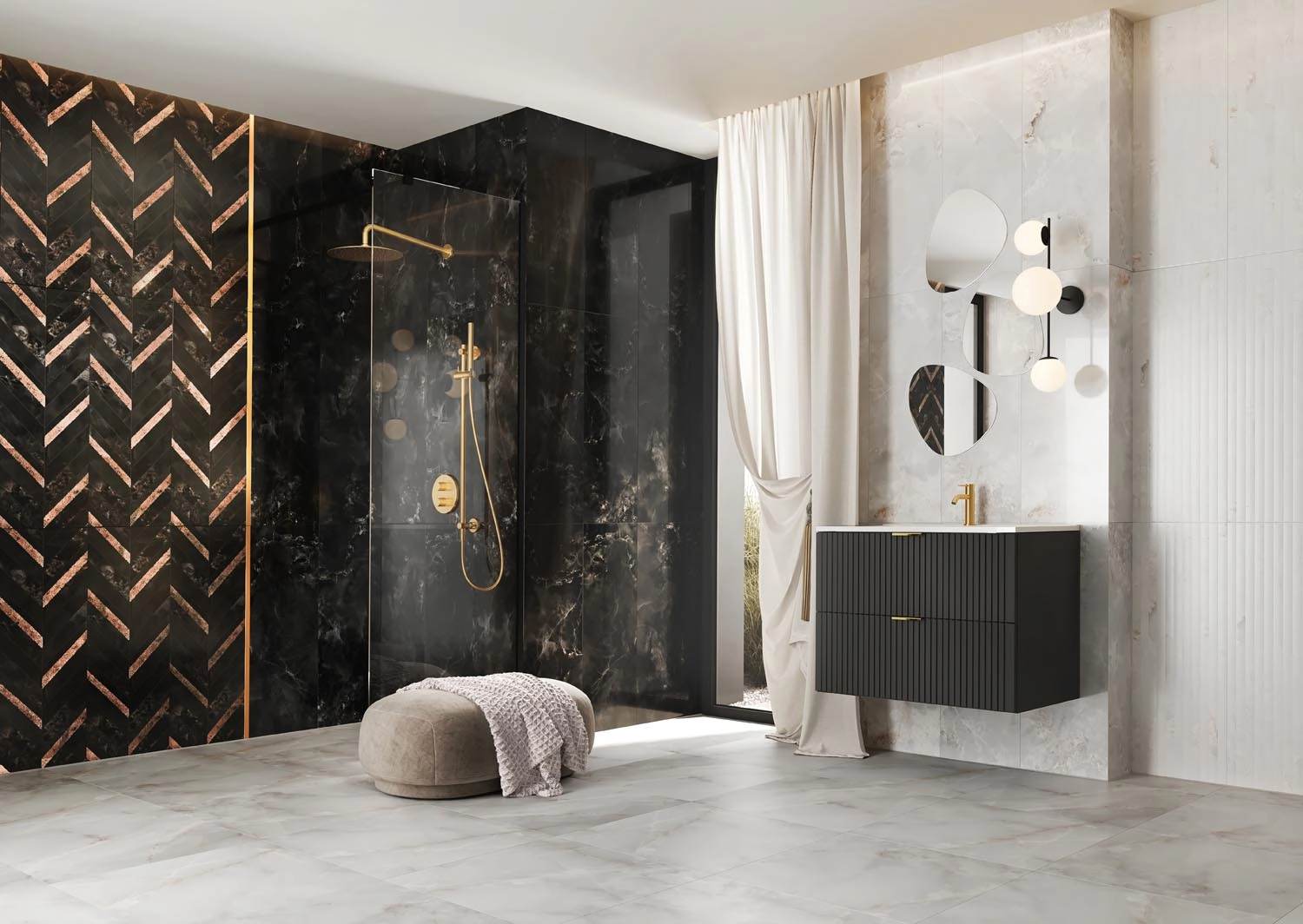 Faianta tip marmura Vero Graphite Gloss 32.8x89.8, negru, finisaj lucios