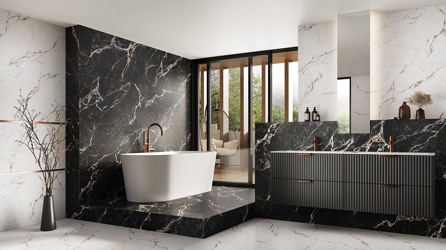 Gresie tip marmura Aceria Black 59.8x119.8, negru, finisaj mat