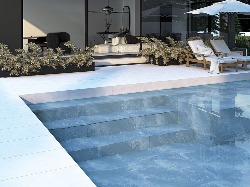 Gresie rectificata portelanata, tip marmura, SG Marcela 1. 60x120 cm, albastru, finisaj mat