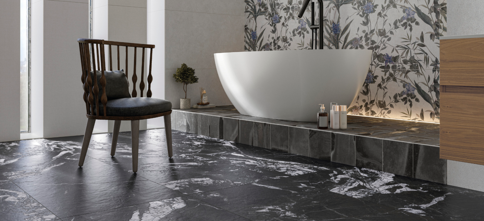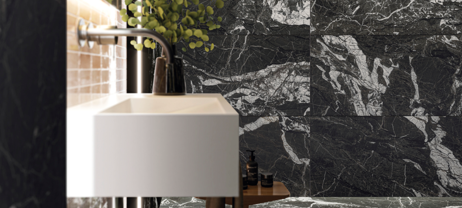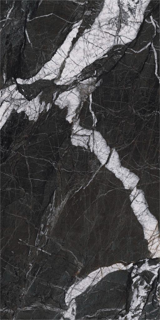 Gresie rectificata tip marmura Arvora Black 60X120cm, negru finisaj mat