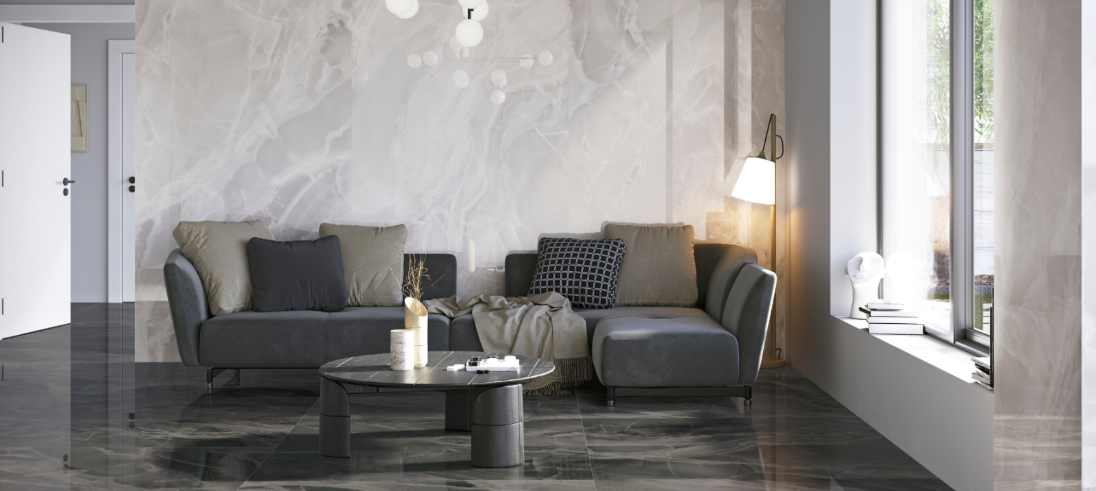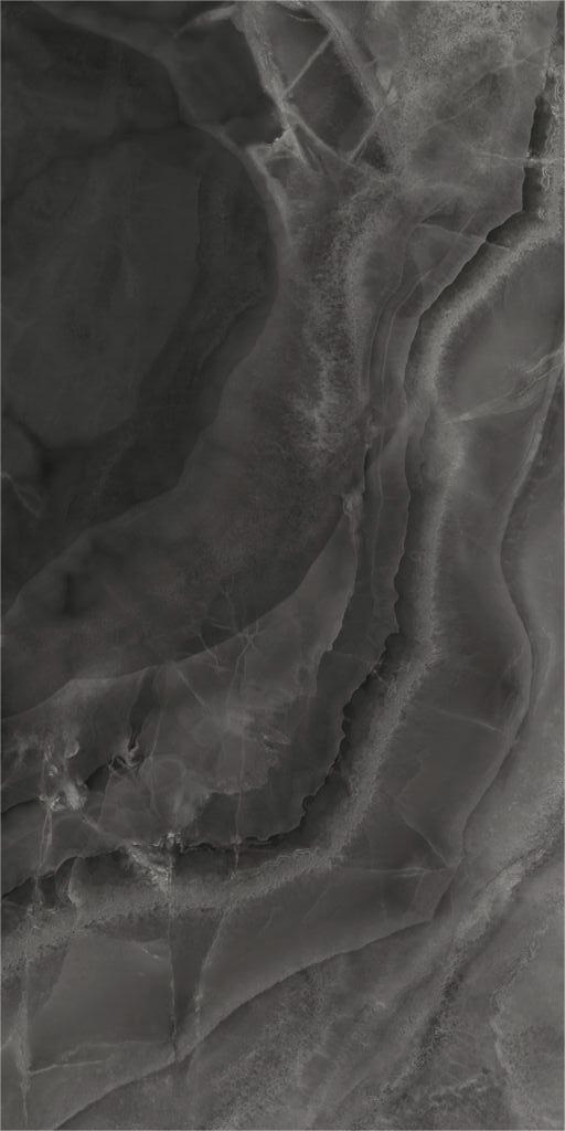 Gresie rectificata tip marmura Mystica Black 60X120cm, negru, finisaj lucios