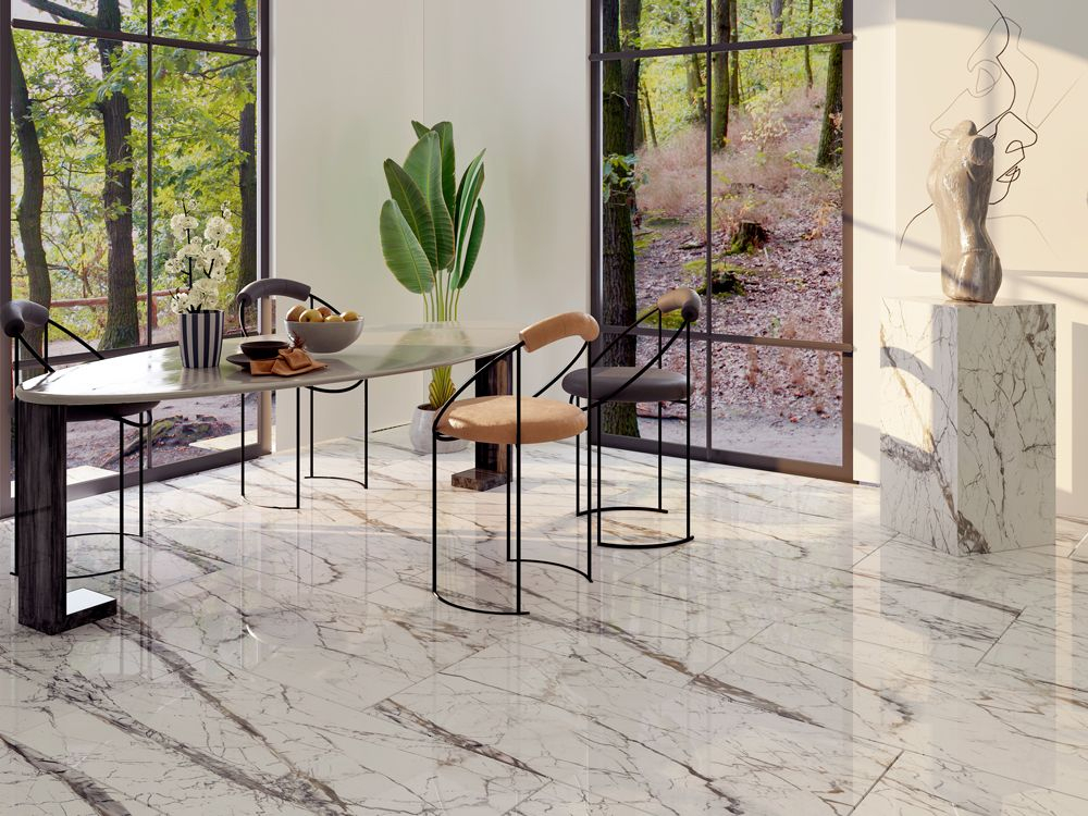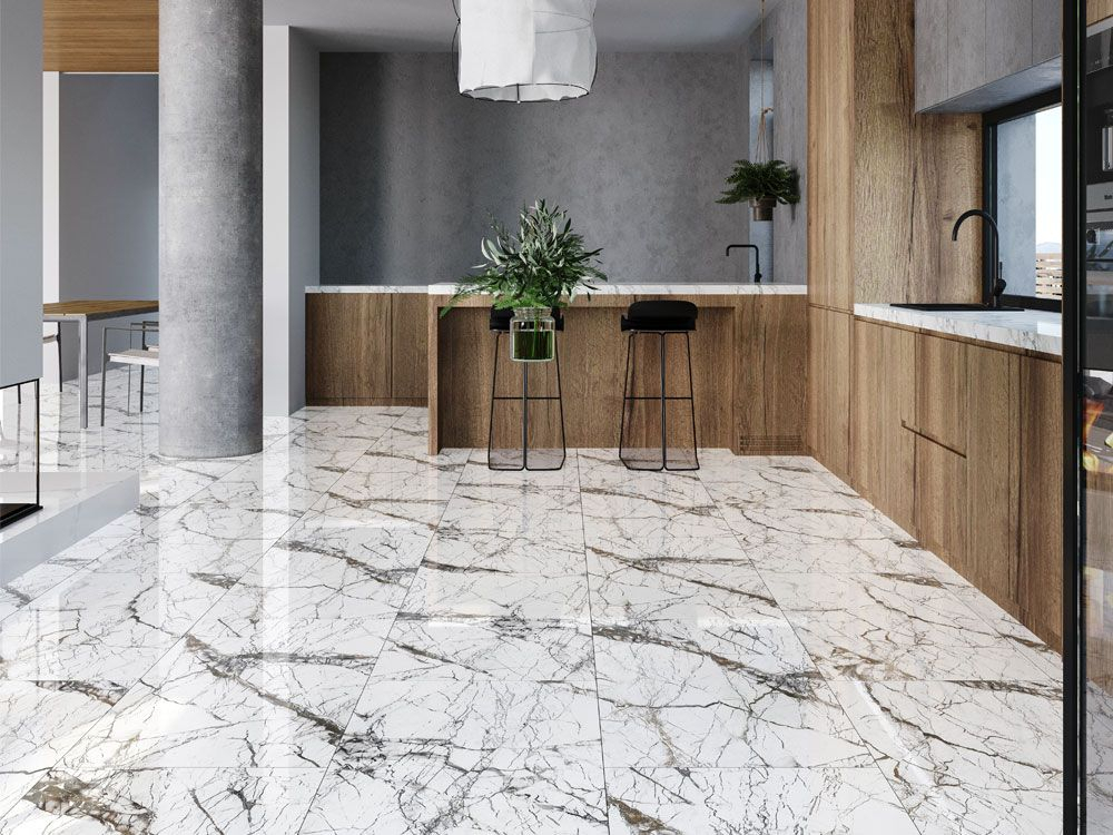 Gresie tip marmura, SG Pole Full Lap 1. 60X120, rectificata, portelanata, alb, finisaj lucios, 2.17mp/cut