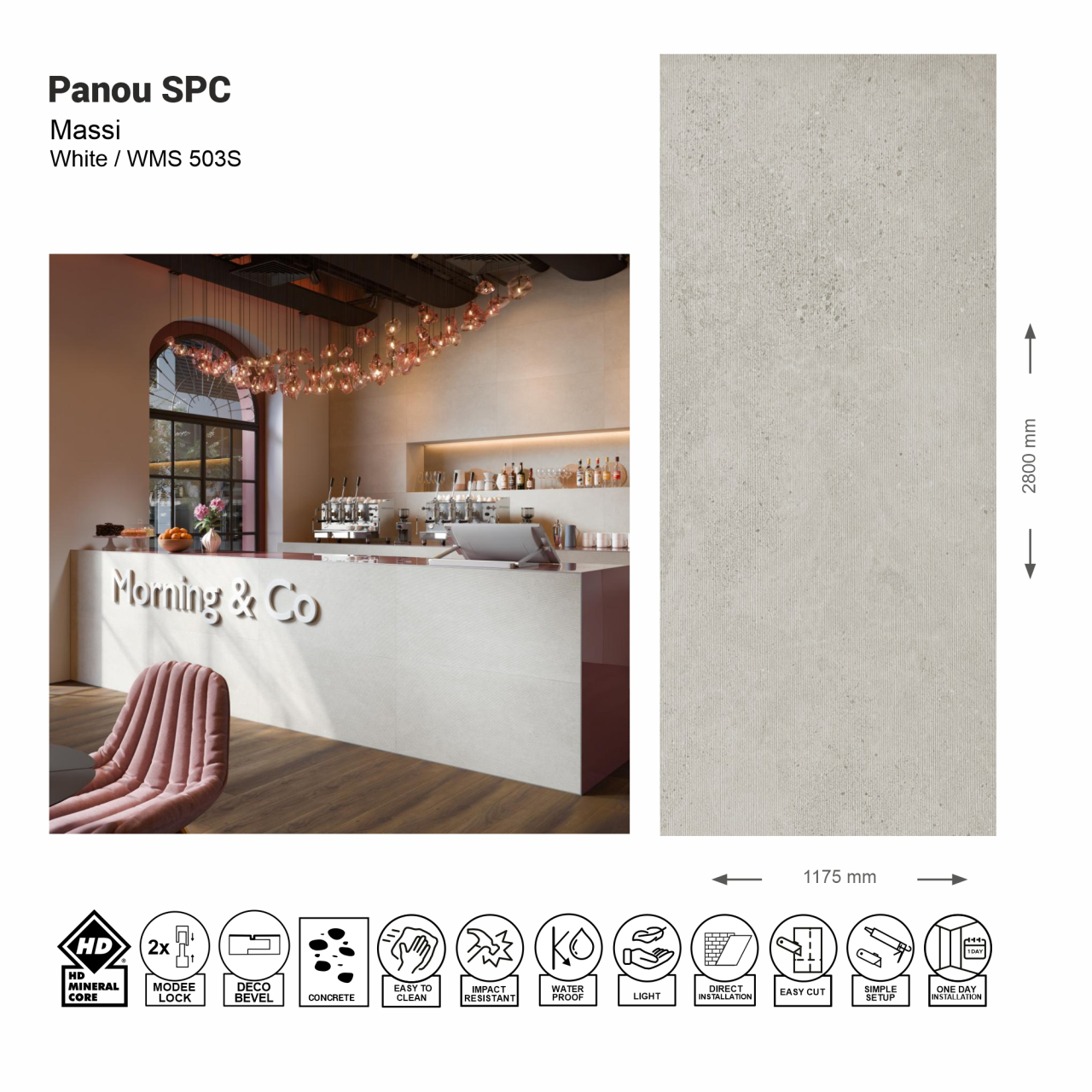 Panou de perete SPC Massi Raw Concrete White Structurat WMS 503S, 117.5x280 cm, gri-bej